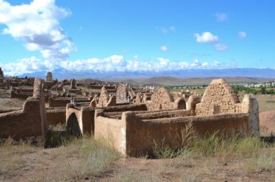 in einem fruchtbaren Tal zwischen den Ausläufern des Tian Shan-Gebirges